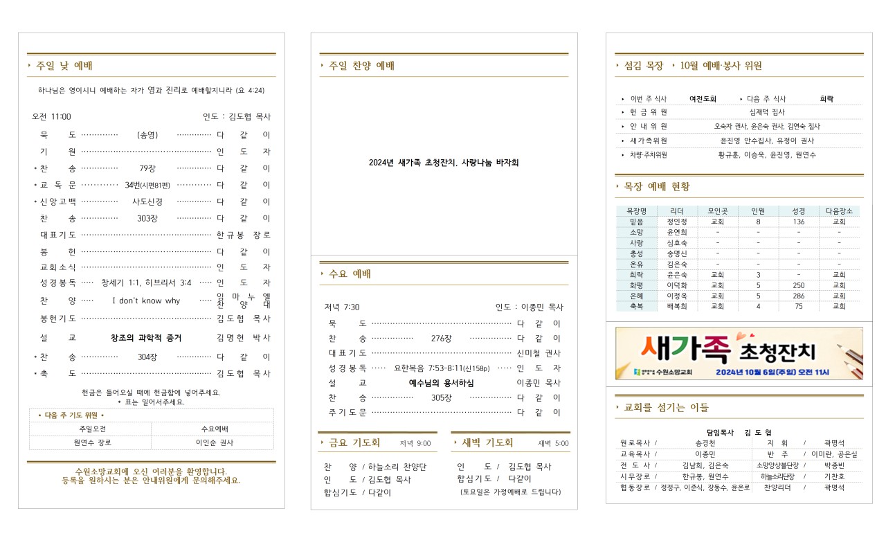 · 오늘은 새가족 초청 주일로 지키며, 성경과학연구소 대표이신 김명현 박사님께서 수고해주십니다.