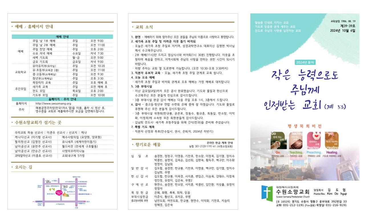 · 3층 부대시설 완공 감사 예배는 다음 주일 오후 1시, 3층에서 드립니다.