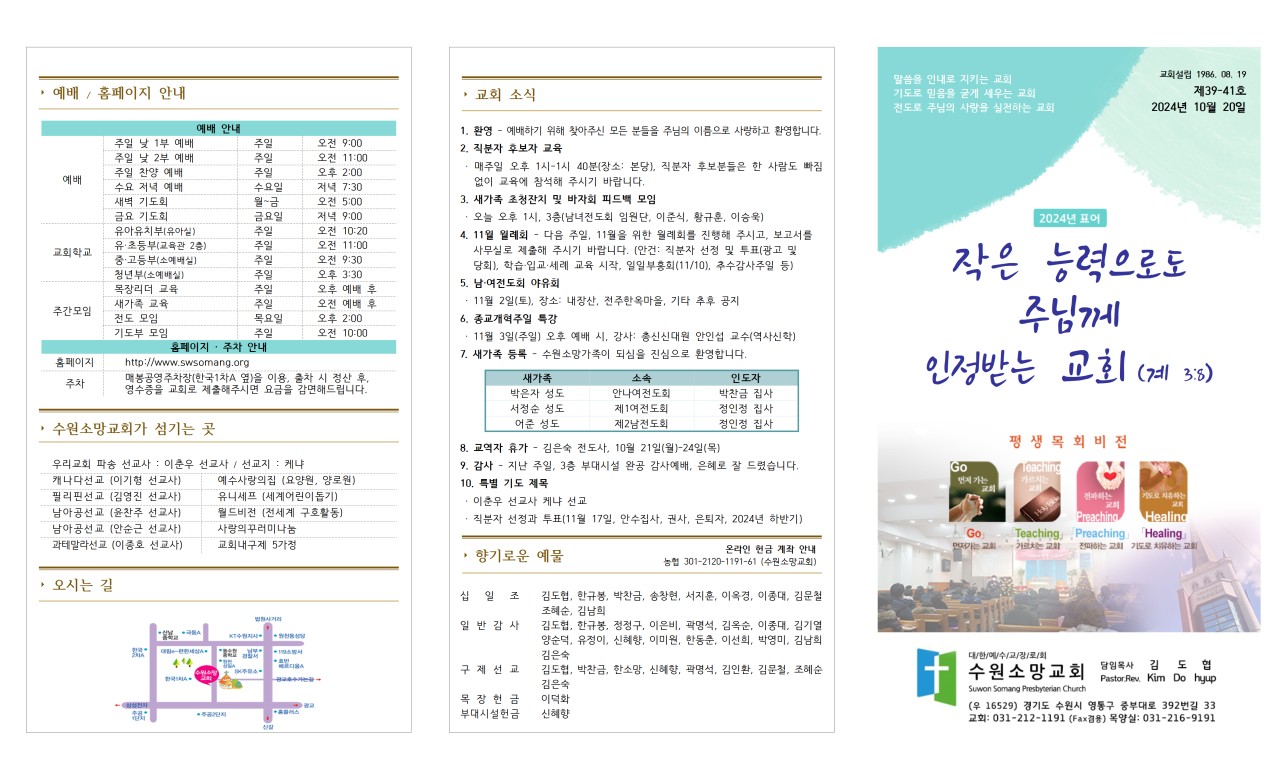 · 매주일 오후 1시-1시 40분(장소: 본당), 직분자 후보분들은 한 사람도 빠짐 없이 교육에 참석해 주시기 바랍니다.