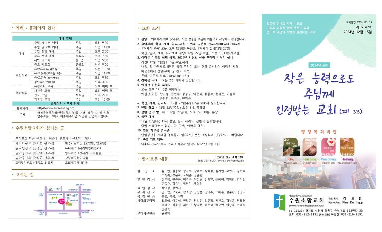 · 학습, 입교, 세례, 유아세례 문답: 12월 22일(주일), 오전 10:30분(사무실)
