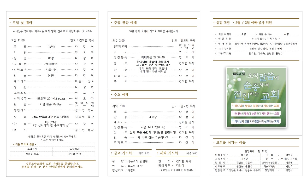 (수요, 금요 예배 임직자들 전원 참석 바람)