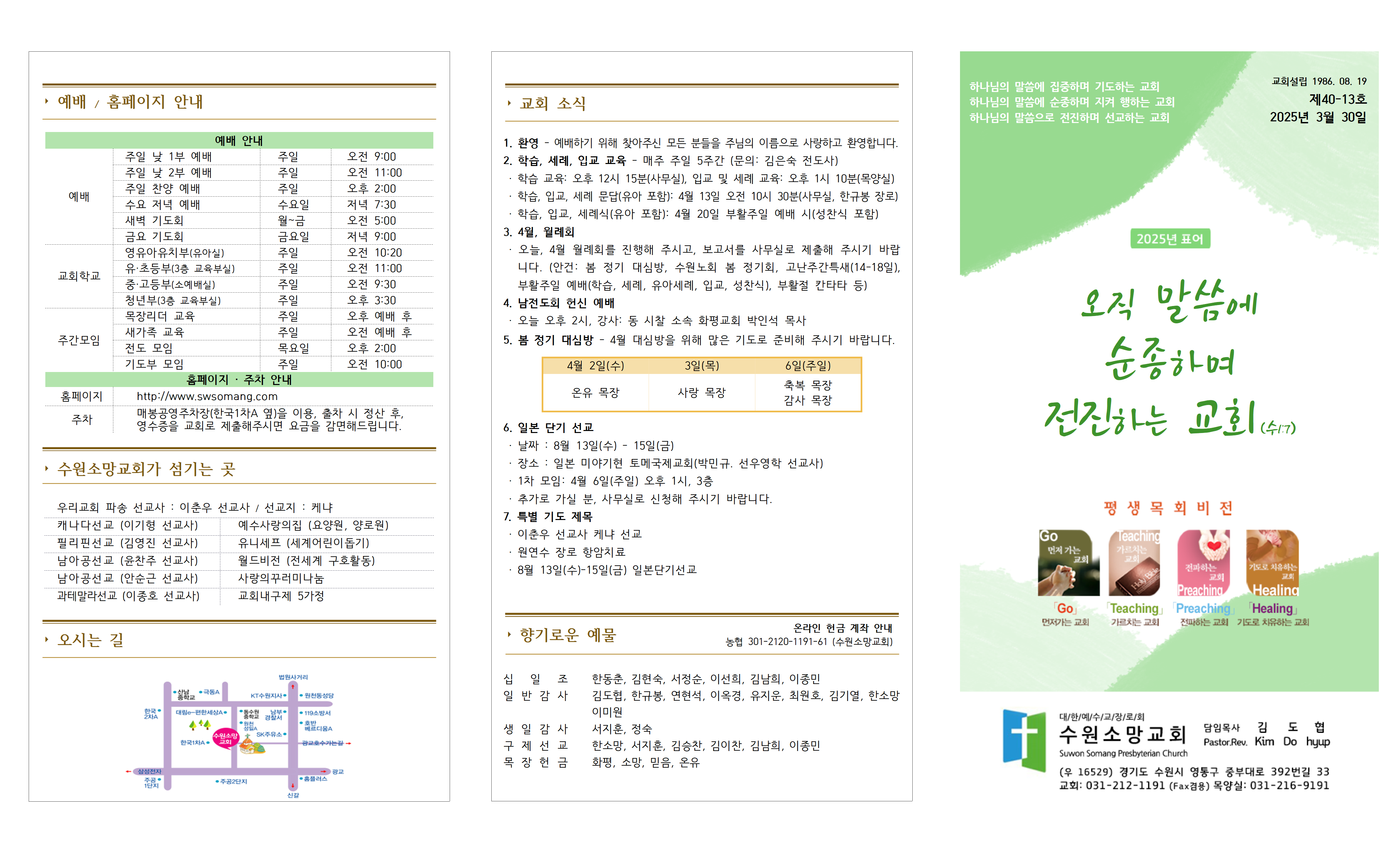 · 학습, 입교, 세례 문답(유아 포함): 4월 13일 오전 10시 30분(사무실, 한규봉 장로)
