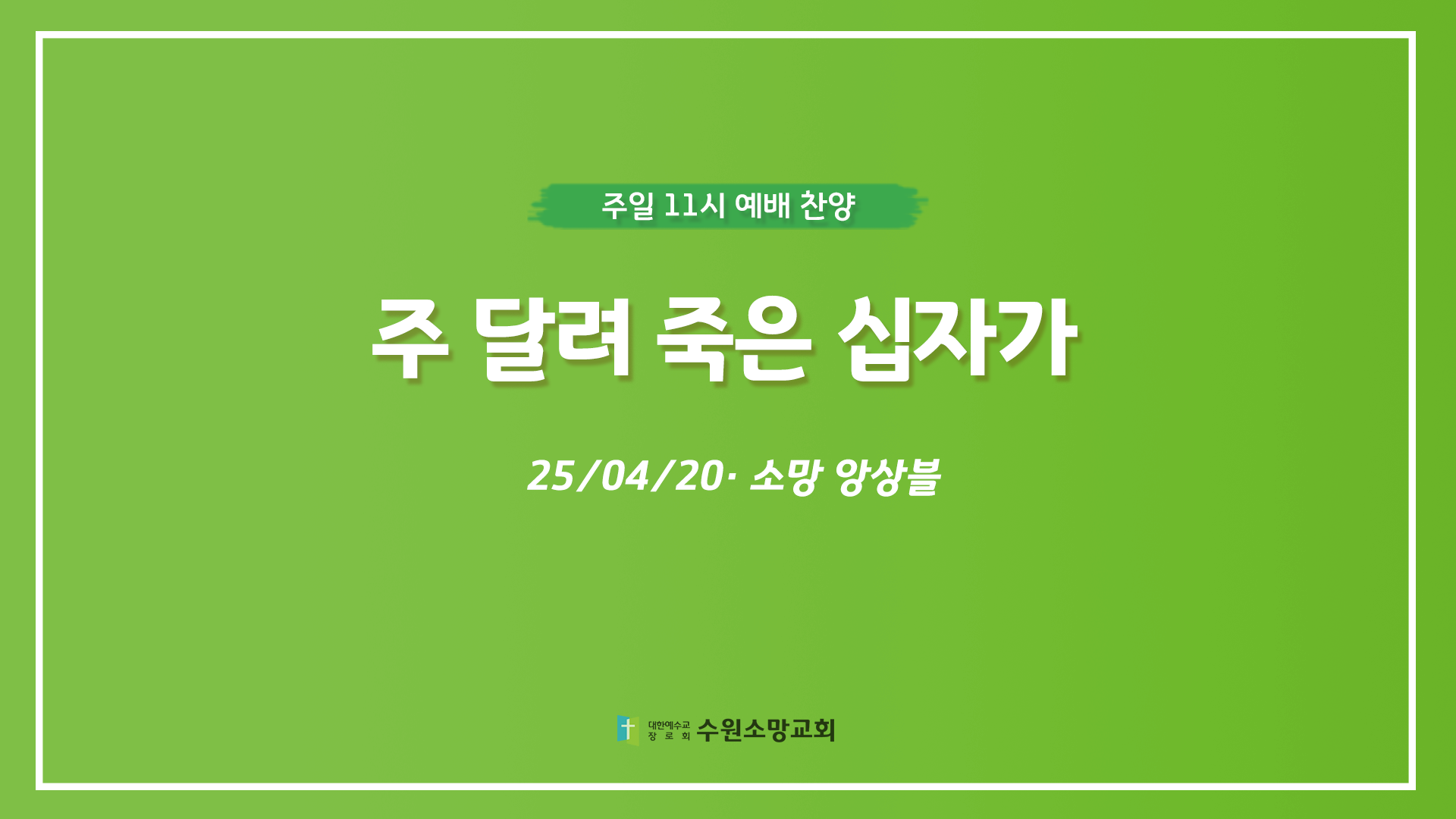 주 달려 죽은 십자가 - 소망 앙상블 - 250420 수원소망교회 2025. 4. 20. 10:47 https://youtu.be/PPP7Vb0fssU 공유하기 게시글 관리 수원소망교회