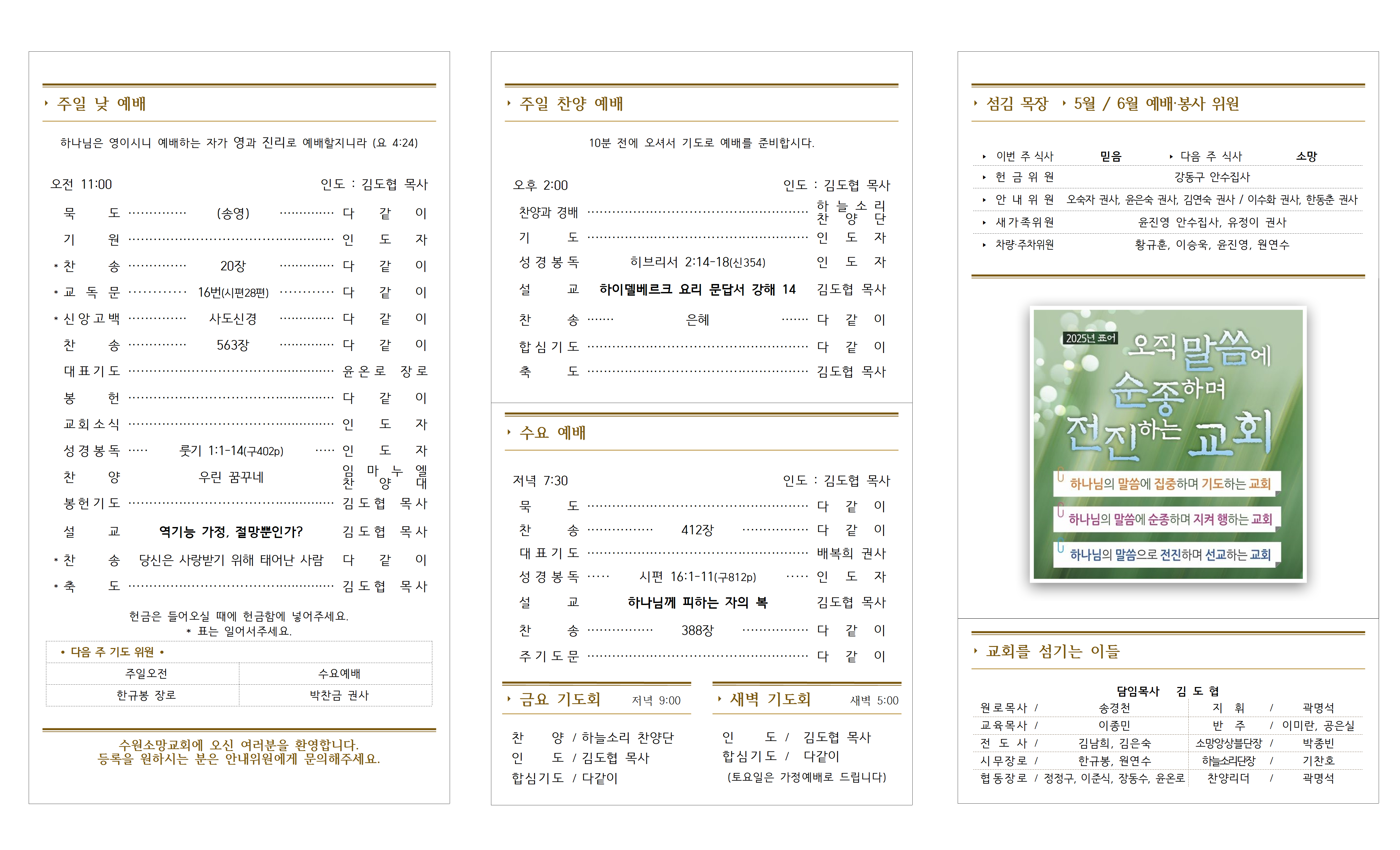 1. 환영 - 예배하기 위해 찾아주신 분들을 주님의 이름으로 사랑하고 환영합니다.