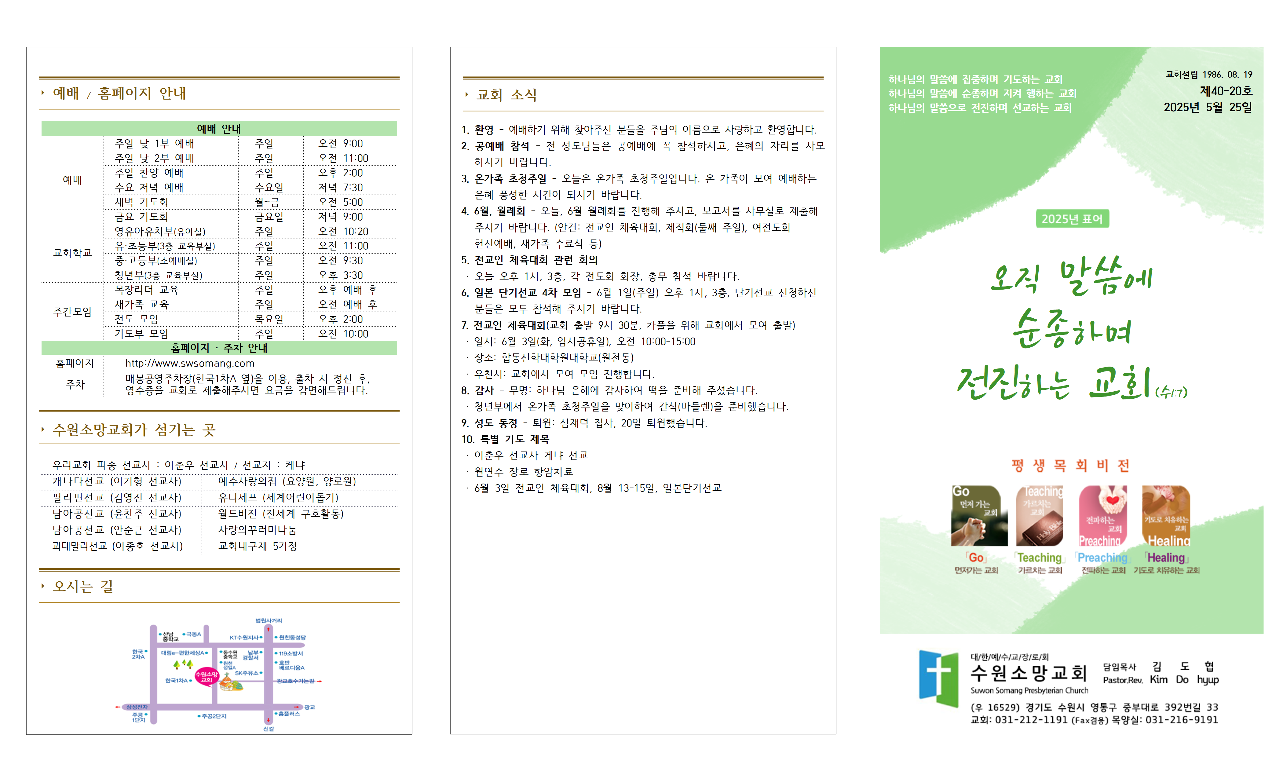 9. 성도 동정 - 퇴원: 심재덕 집사, 20일 퇴원했습니다.