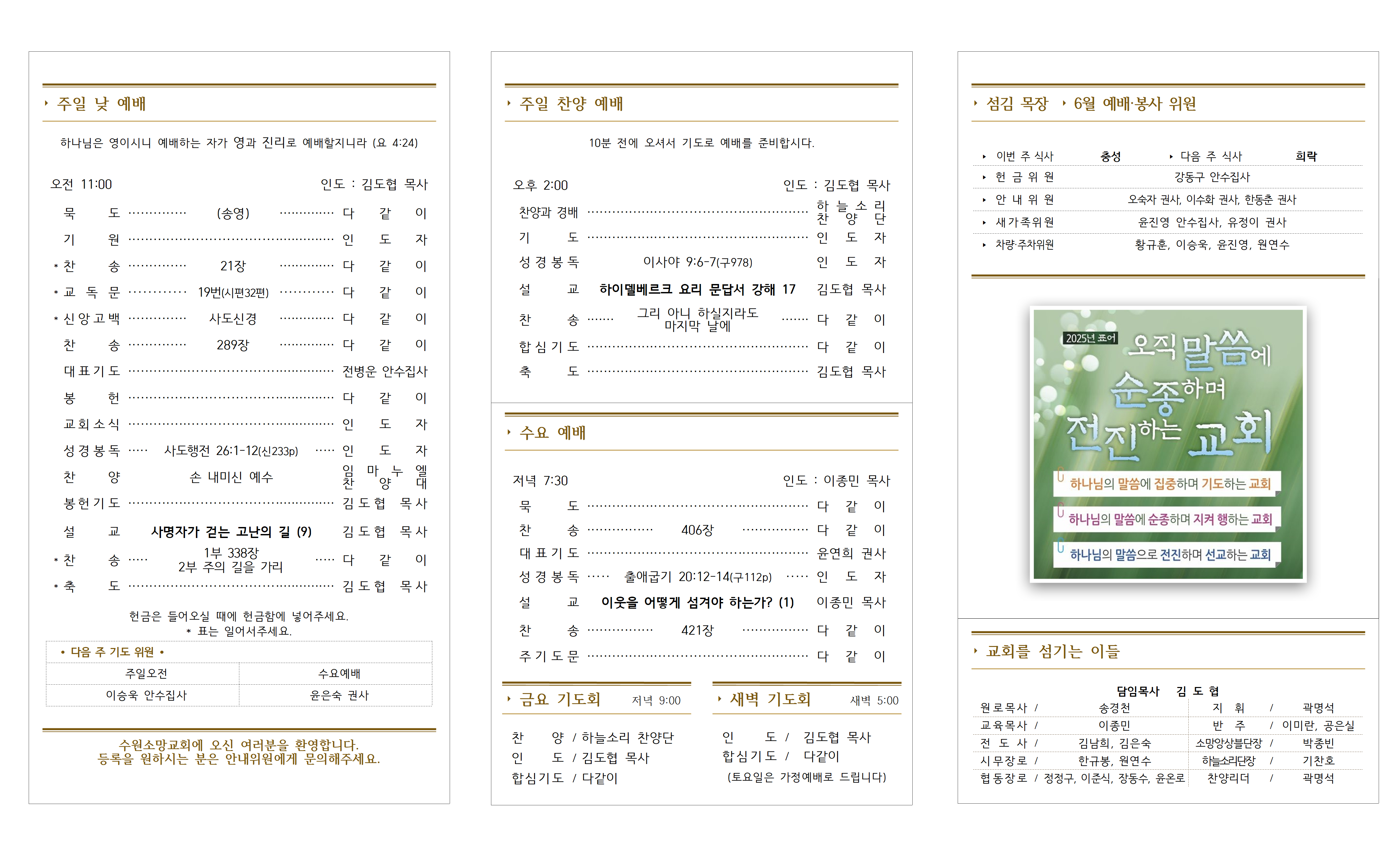 · 전 성도님들은 공예배에 꼭 참석하시고, 은혜의 자리를 사모하시기 바랍니다.