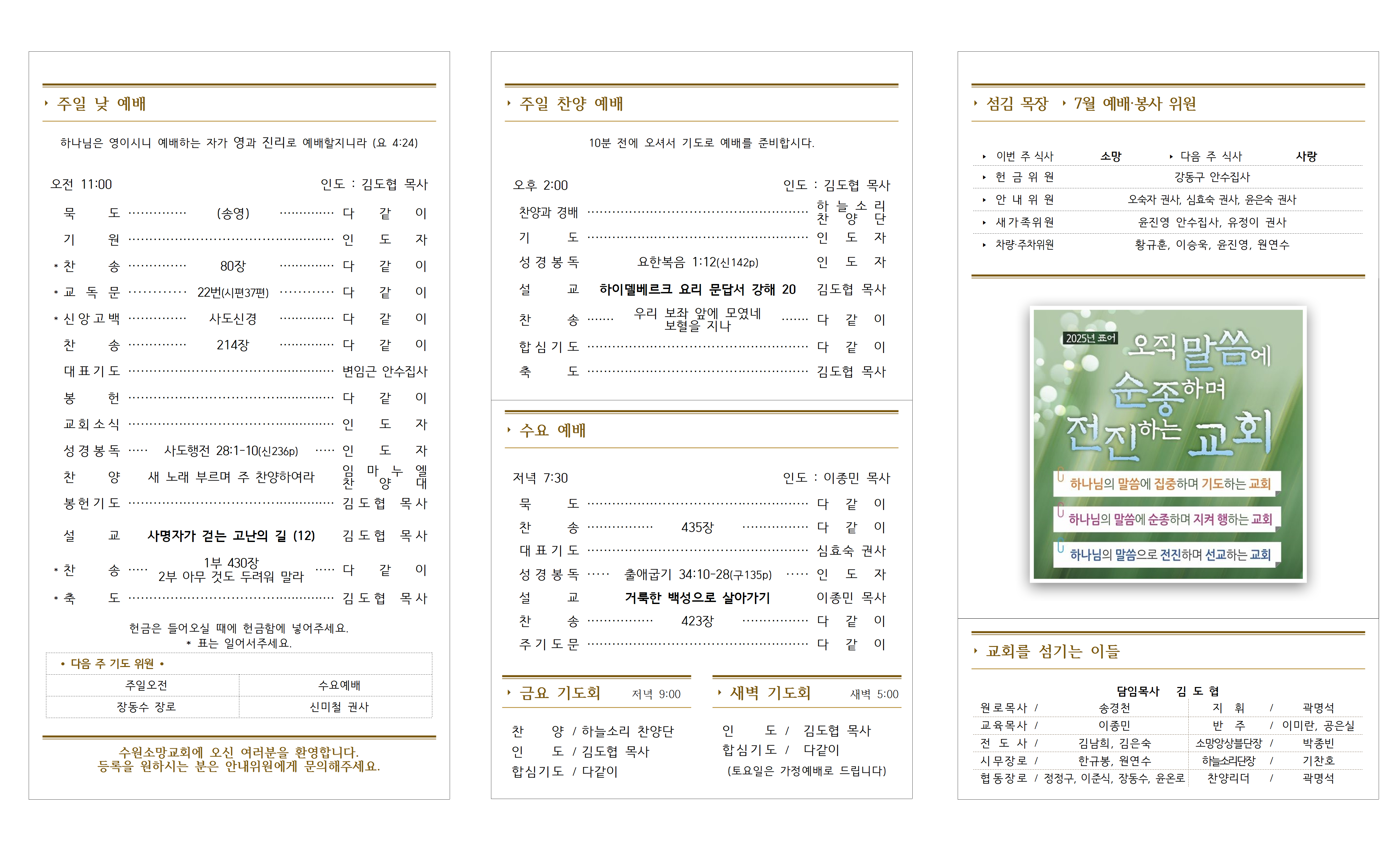· 일시·장소 : 7월 13, 20, 27일(주일) 오전 10시, 1층 유아실