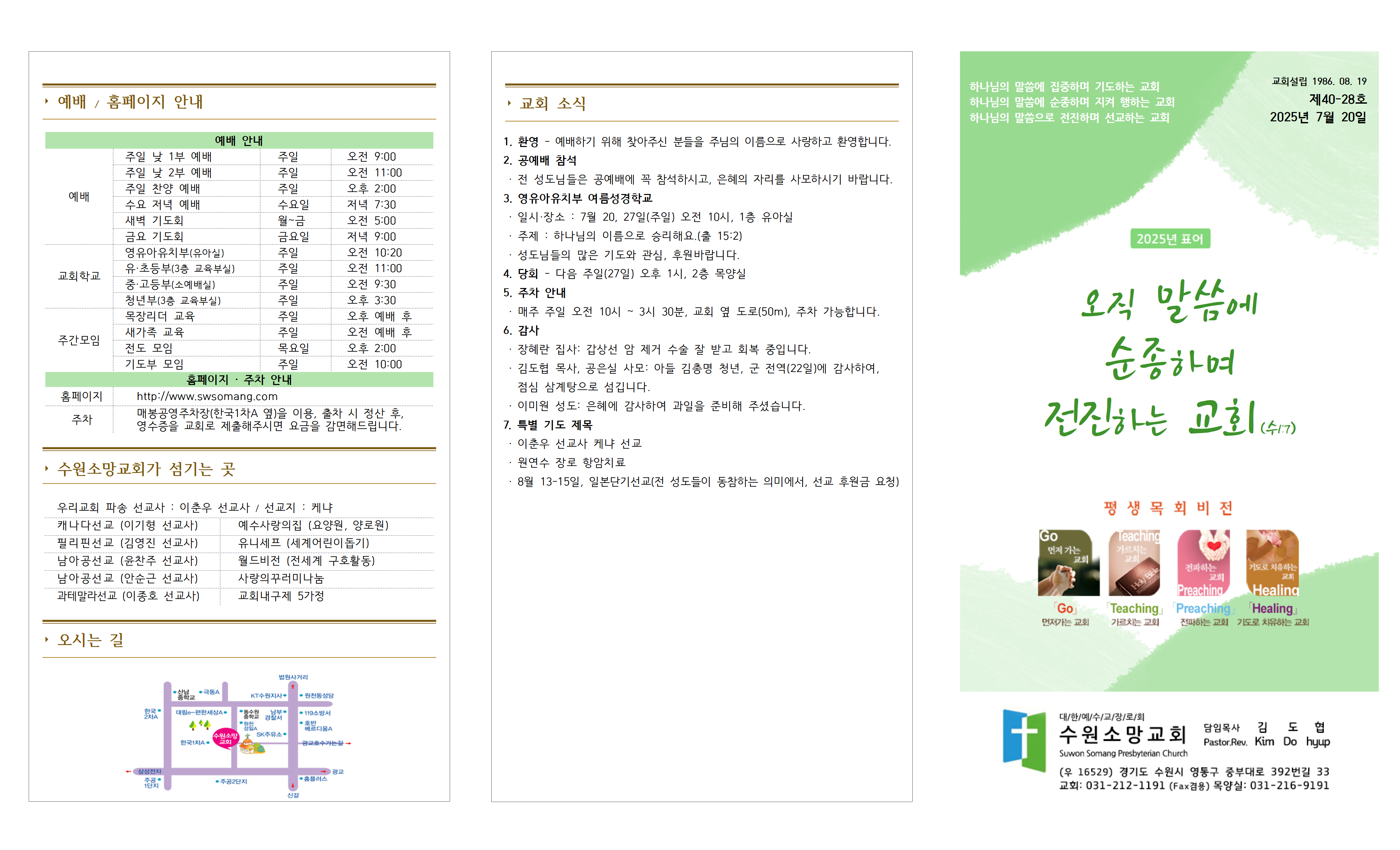 · 일시·장소 : 7월 13, 20, 27일(주일) 오전 10시, 1층 유아실