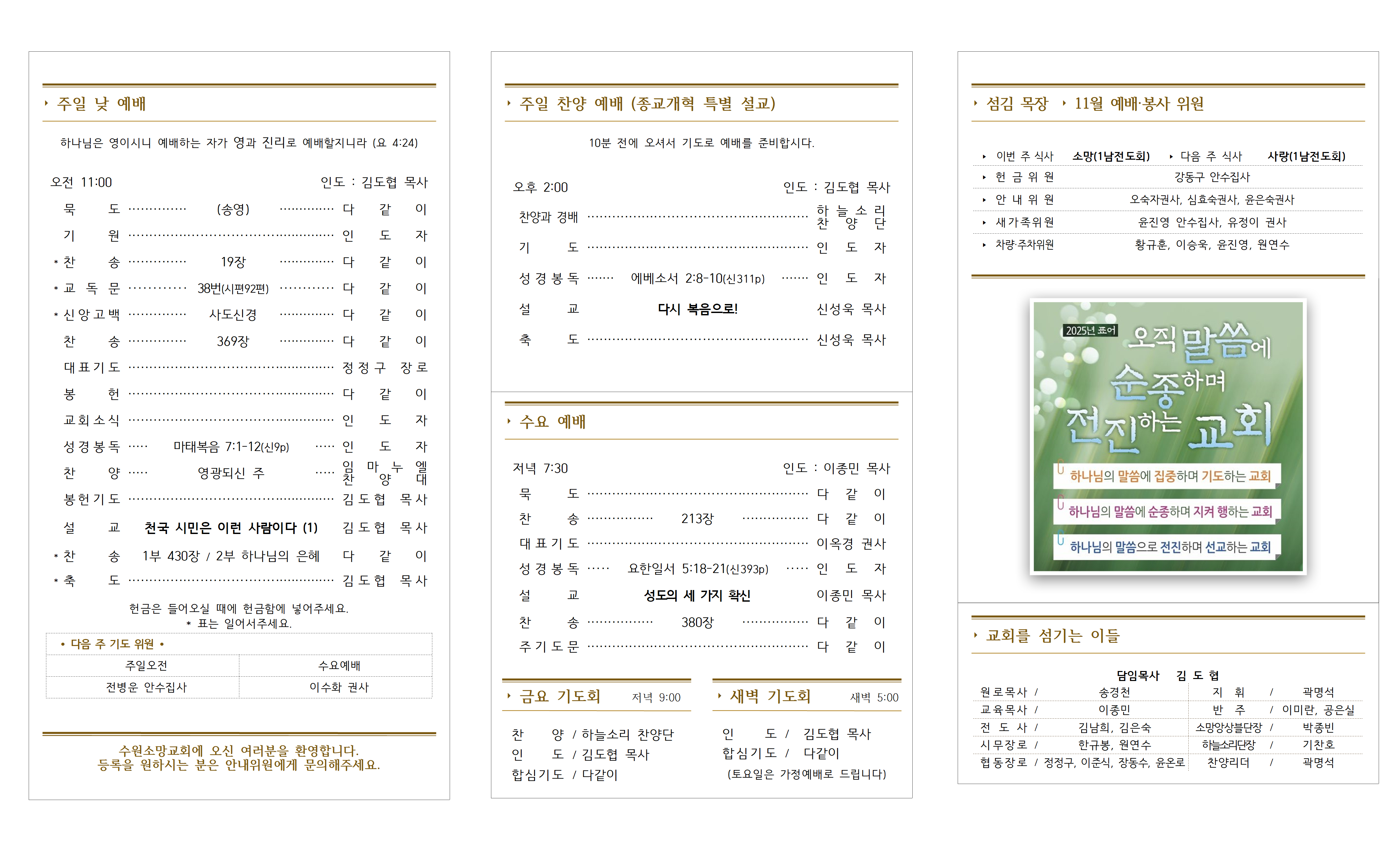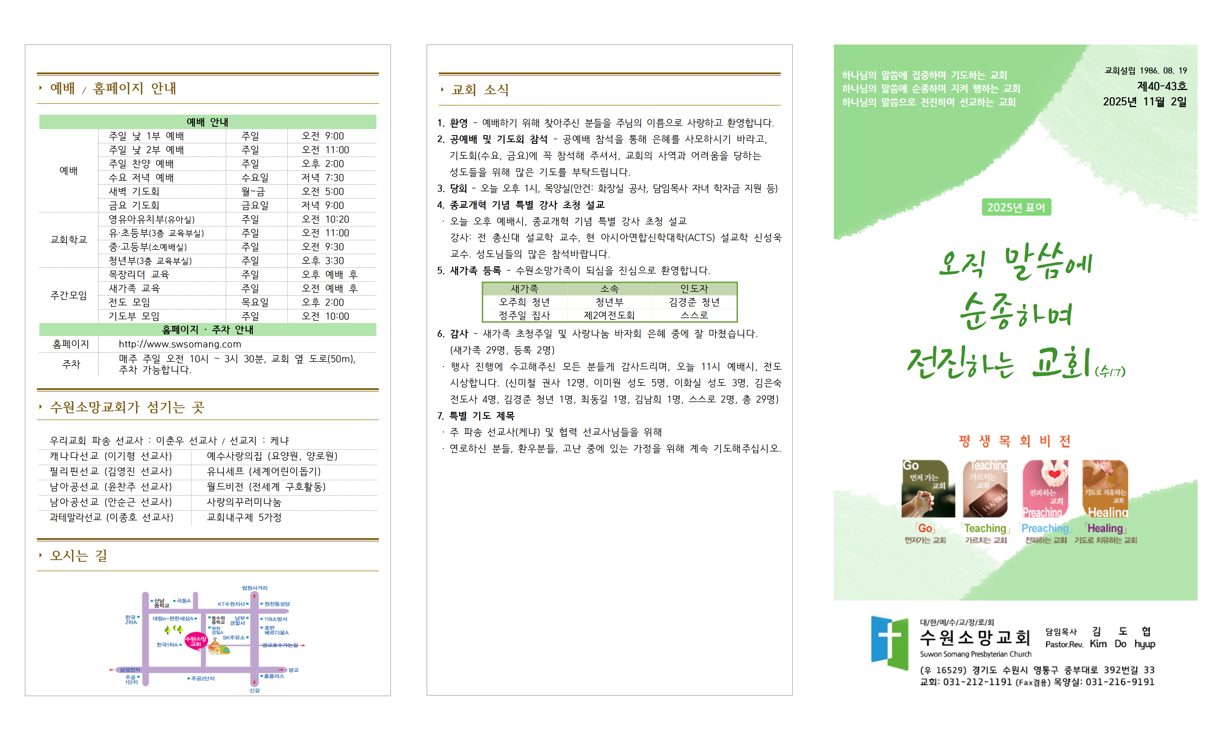 1. 환영 - 예배하기 위해 찾아주신 분들을 주님의 이름으로 사랑하고 환영합니다.