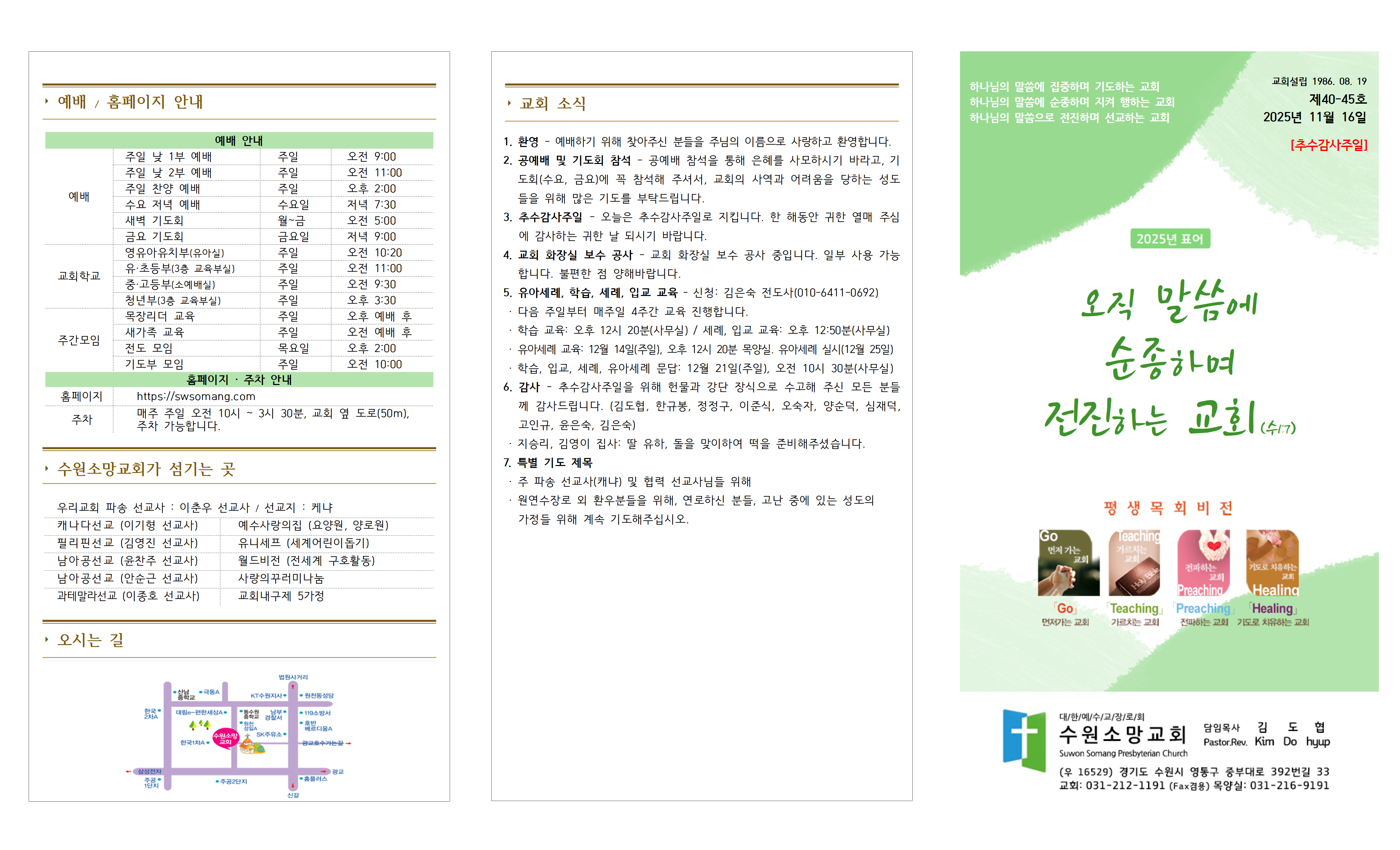 1. 환영 - 예배하기 위해 찾아주신 분들을 주님의 이름으로 사랑하고 환영합니다.