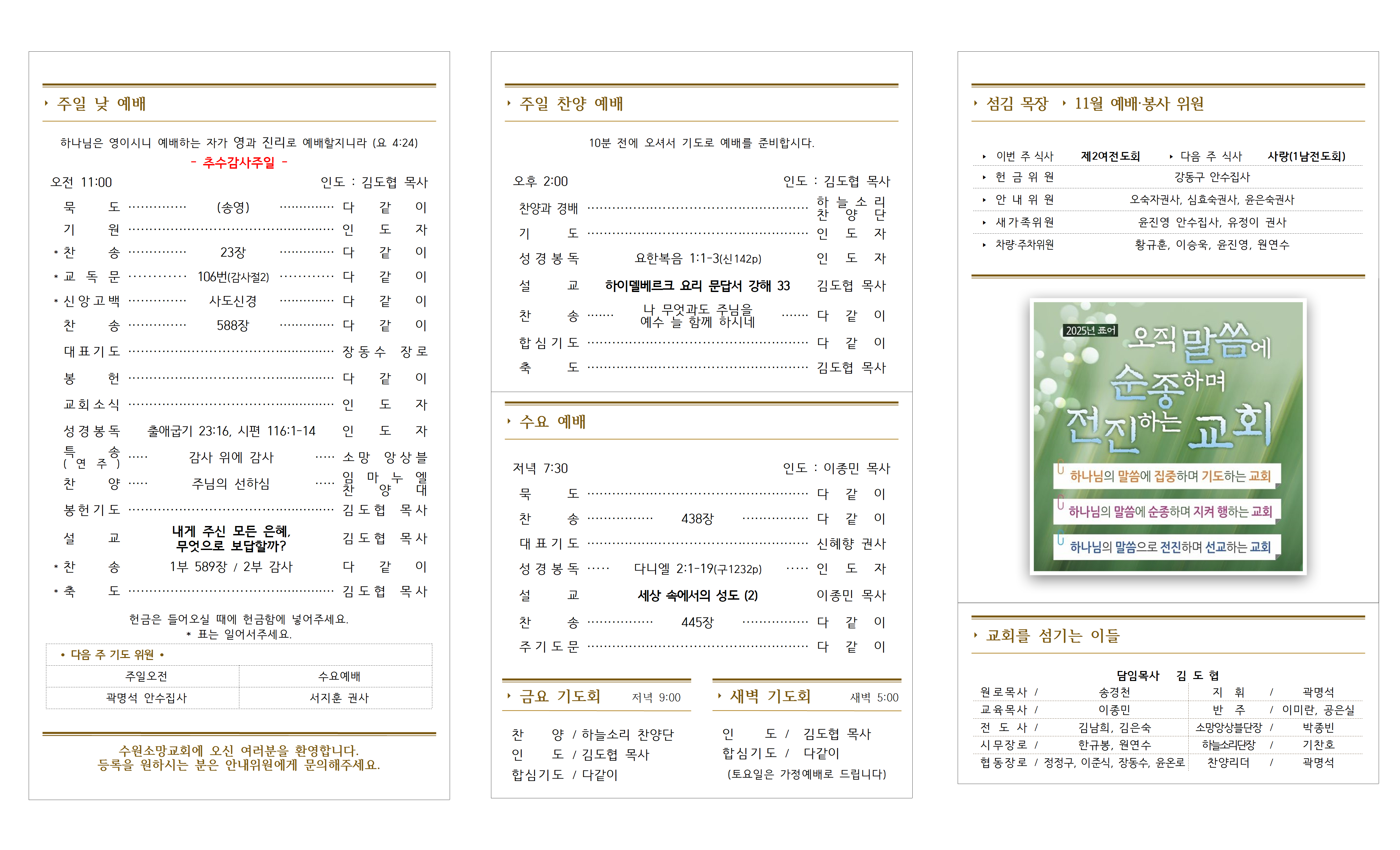 6. 감사 - 추수감사주일을 위해 헌물과 강단 장식으로 수고해 주신 모든 분들께 감사드립니다. (김도협, 한규봉, 정정구, 이준식, 오숙자, 양순덕, 심재덕, 고인규, 윤은숙, 김은숙)