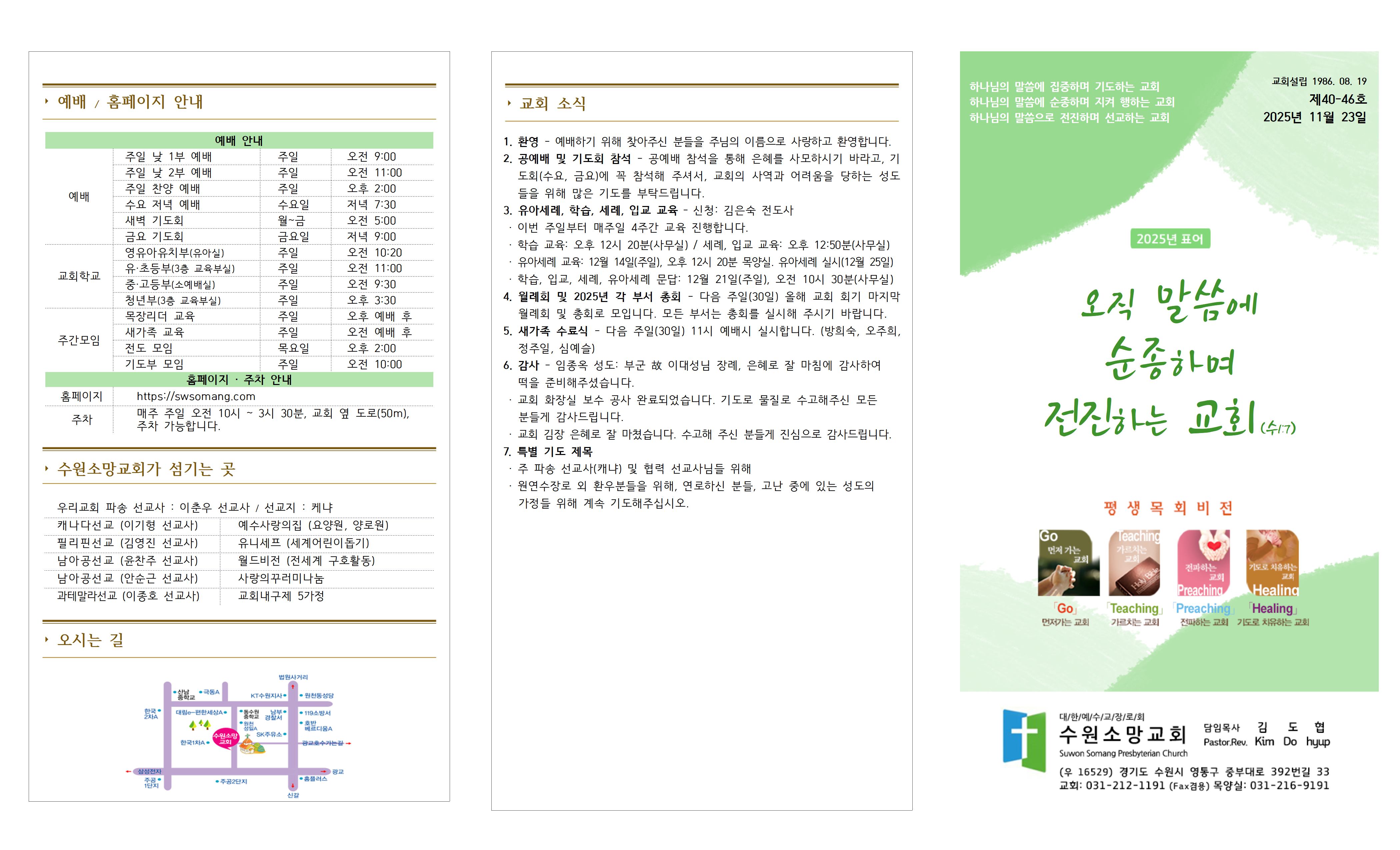 4. 월례회 및 2025년 각 부서 총회 - 다음 주일(30일) 올해 교회 회기 마지막 월례회 및 총회로 모입니다. 모든 부서는 총회를 실시해 주시기 바랍니다.