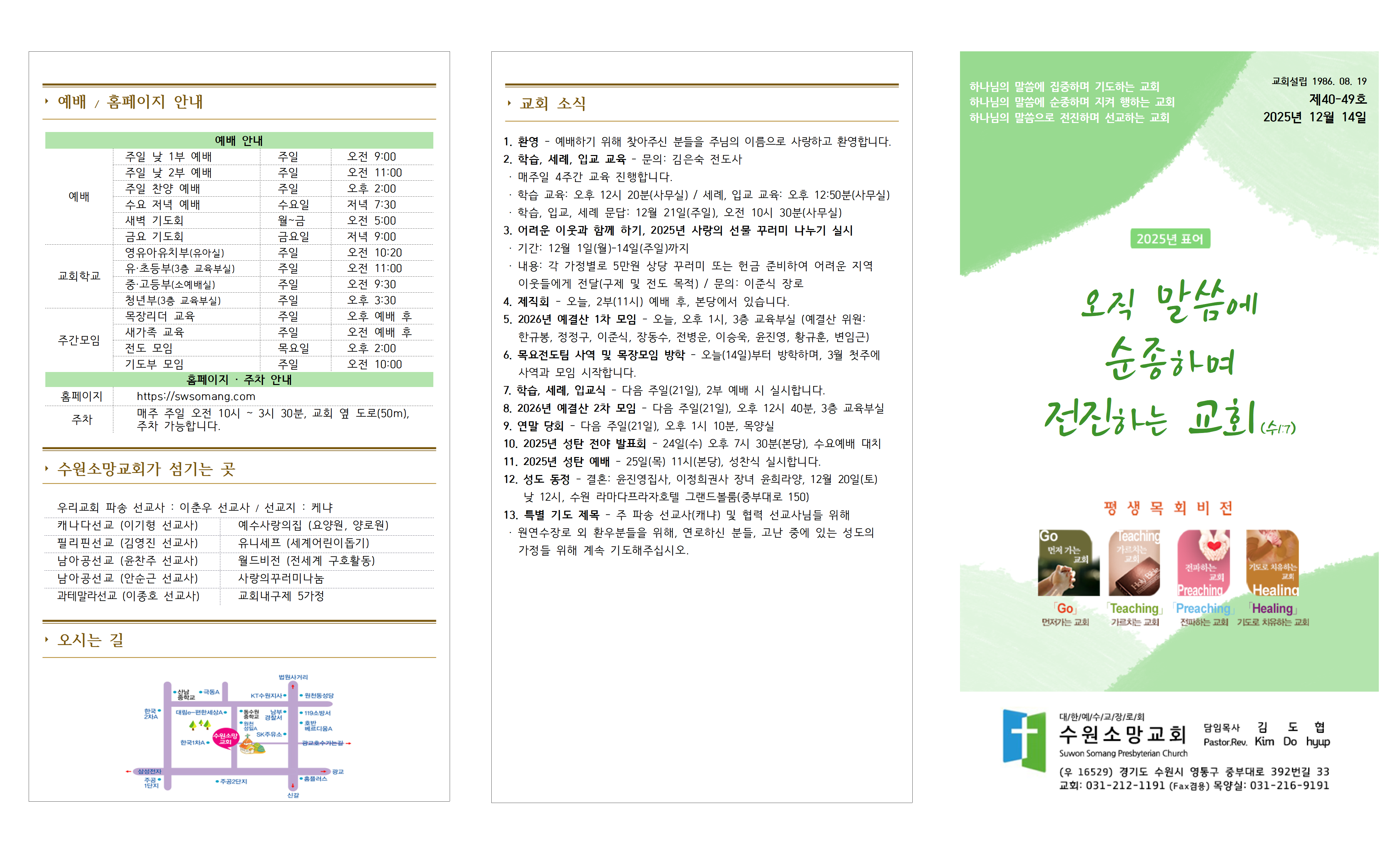 · 학습, 입교, 세례 문답: 12월 21일(주일), 오전 10시 30분(사무실)