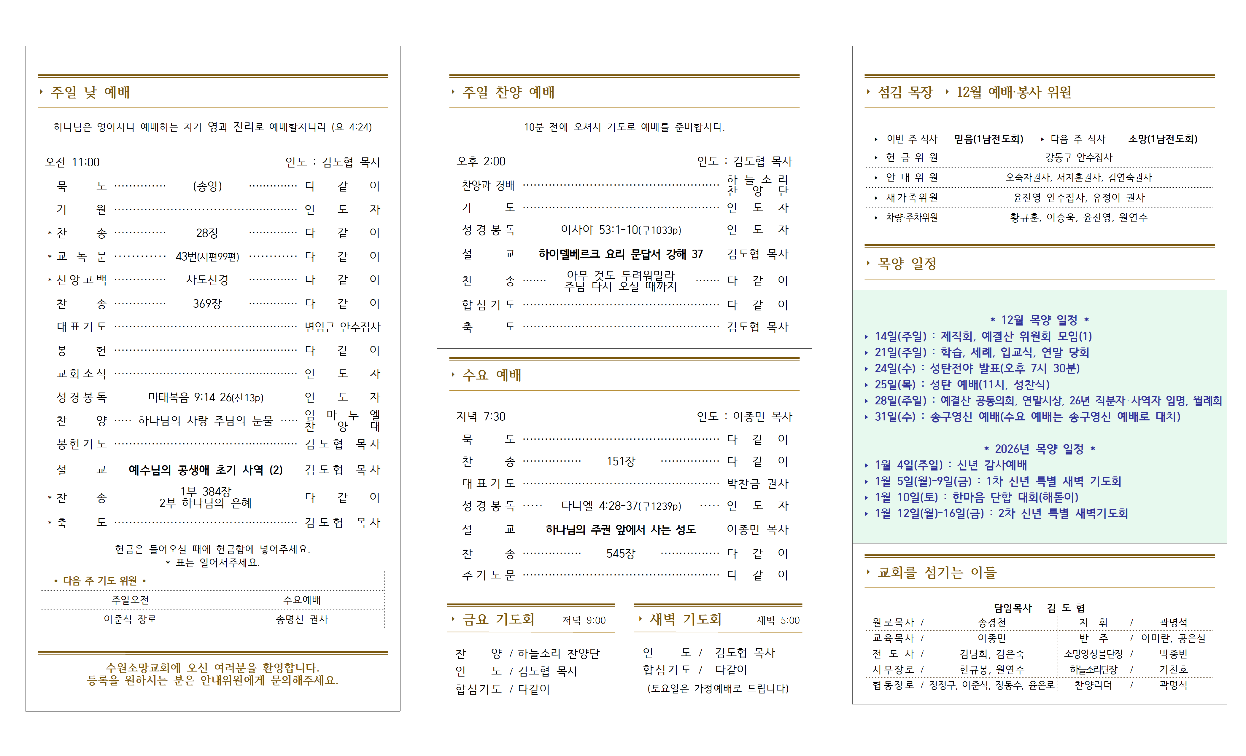 10. 2025년 성탄 전야 발표회 - 24일(수) 오후 7시 30분(본당), 수요예배 대치