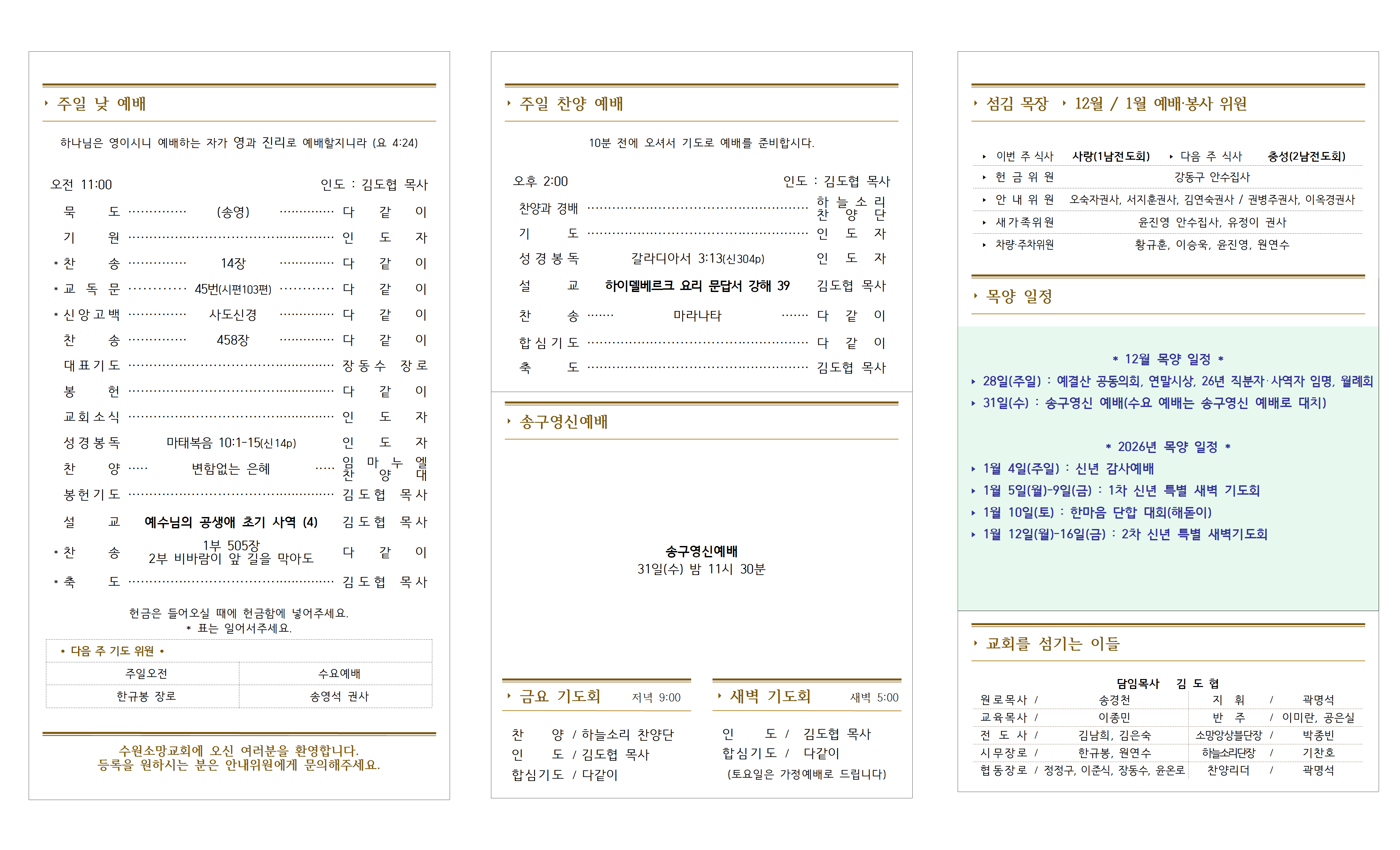 8. 신년 감사예배 - 다음 주일(2026년 1월 4일), 신년 감사예배로 드립니다.
