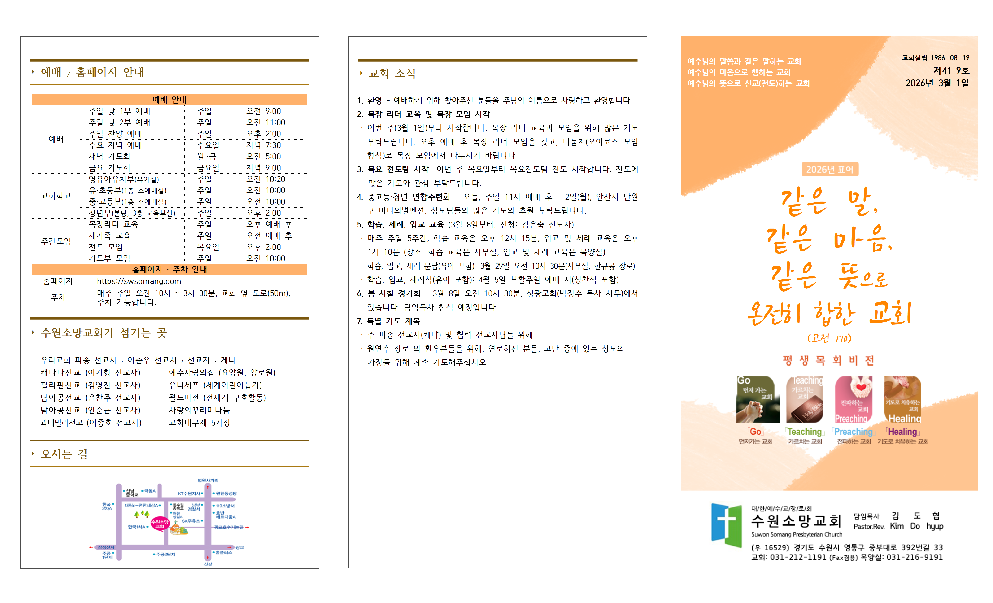 6. 봄 시찰 정기회 - 3월 9일 오전 10시 30분, 성광교회(박정수 목사 시무)에서 있습니다. 담임목사 참석 예정입니다.