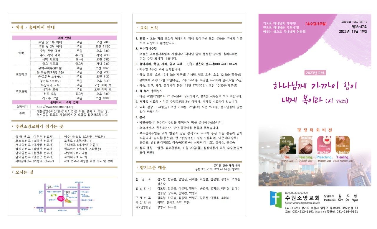 · 오늘은 추수감사주일로 지킵니다. 하나님 앞에 풍성한 감사를 올려드리는 귀한 주일 되시기 바랍니다.