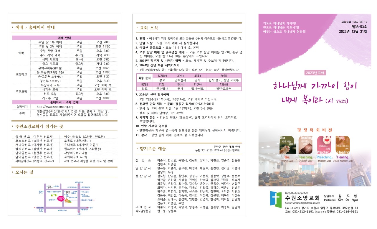 5. 2024년 직분자 및 사역자 임명 - 오늘, 게시판 및 주보에 게시합니다.