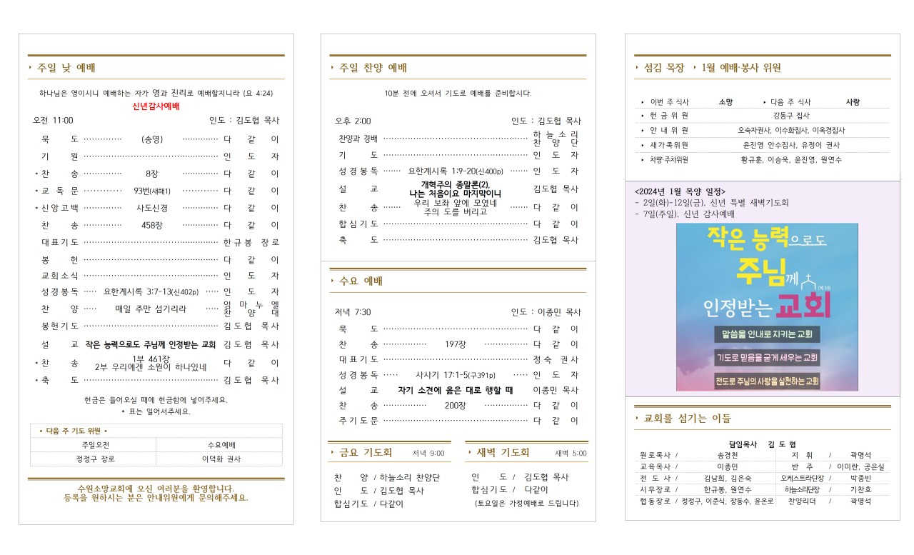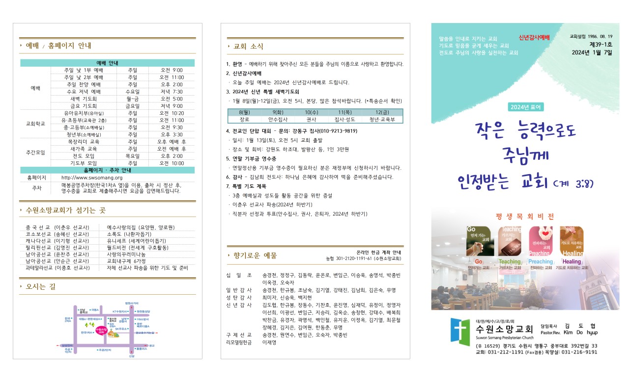 · 오늘 주일 예배는 2024년 신년감사예배로 드립니다.