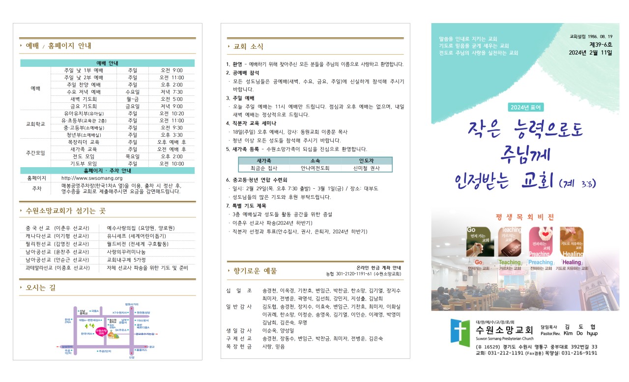 · 모든 성도님들은 공예배(새벽, 수요, 금요, 주일)에 신실하게 참석해 주시기 바랍니다.