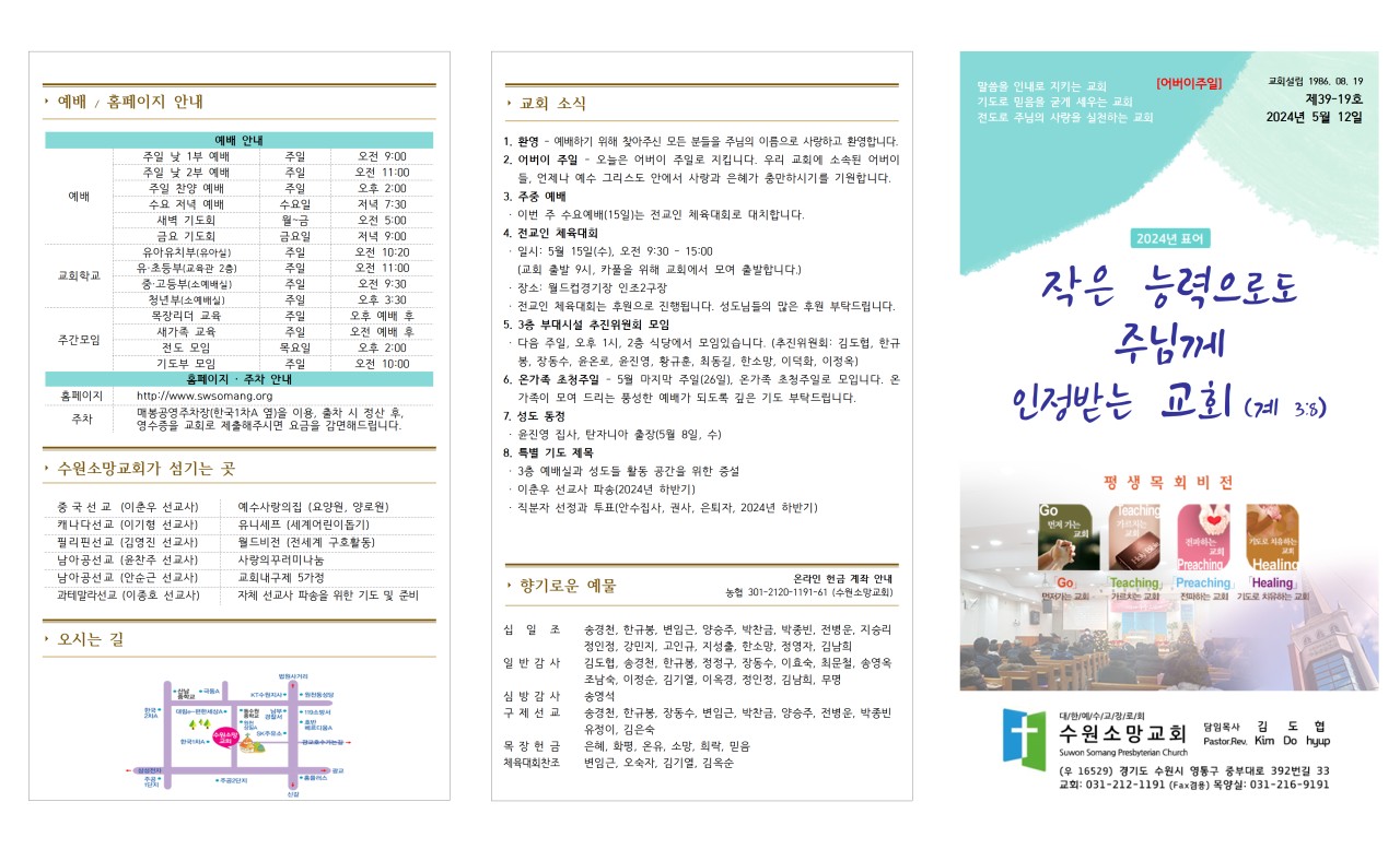 · 이번 주 수요예배(15일)는 전교인 체육대회로 대치합니다.