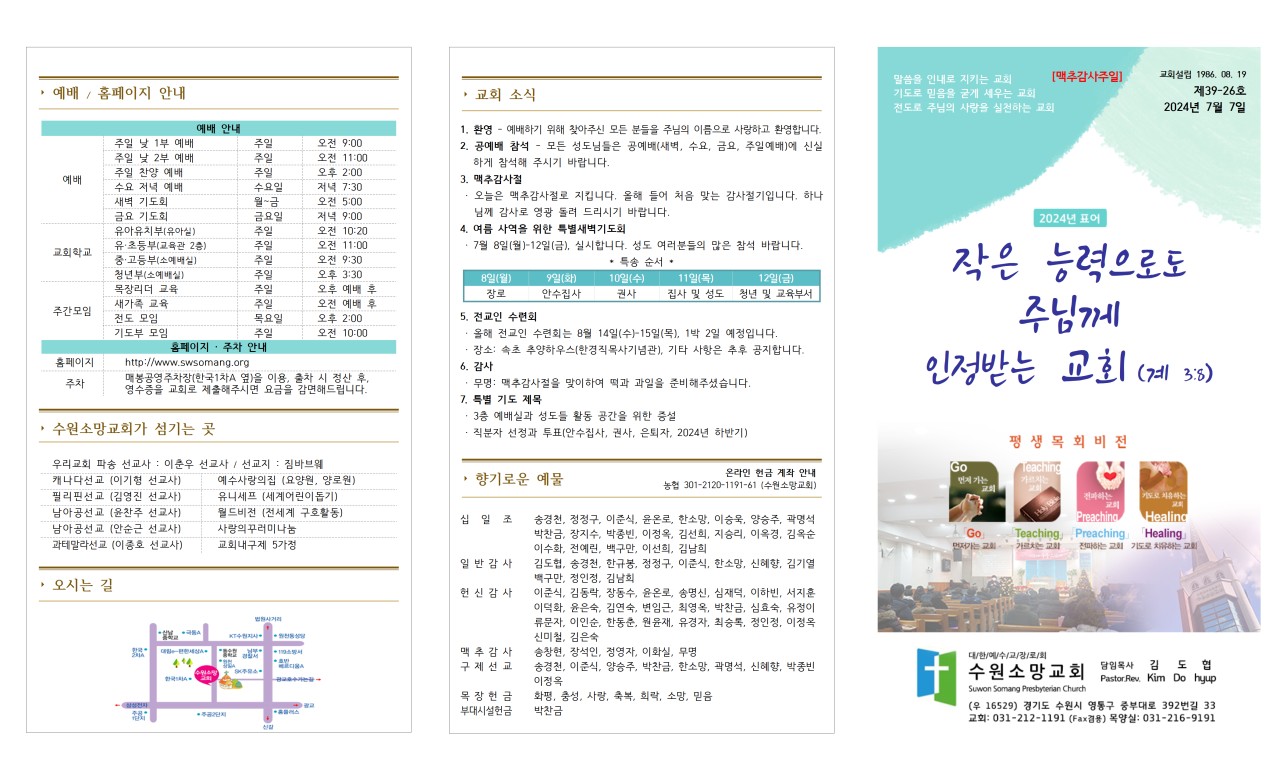 · 7월 8일(월)-12일(금), 실시합니다. 성도 여러분들의 많은 참석 바랍니다.