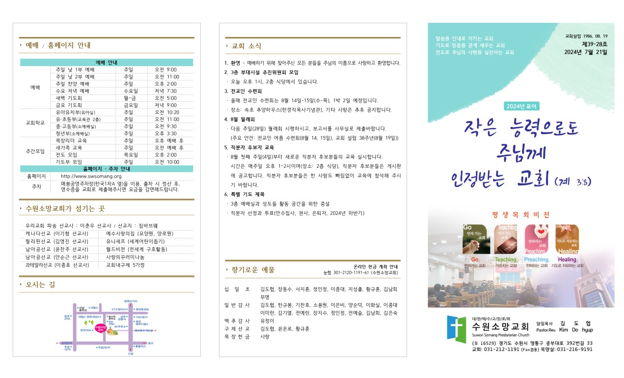 (주요 안건: 전교인 여름 수련회(8월 14, 15일), 교회 설립 38주년(8월 19일))